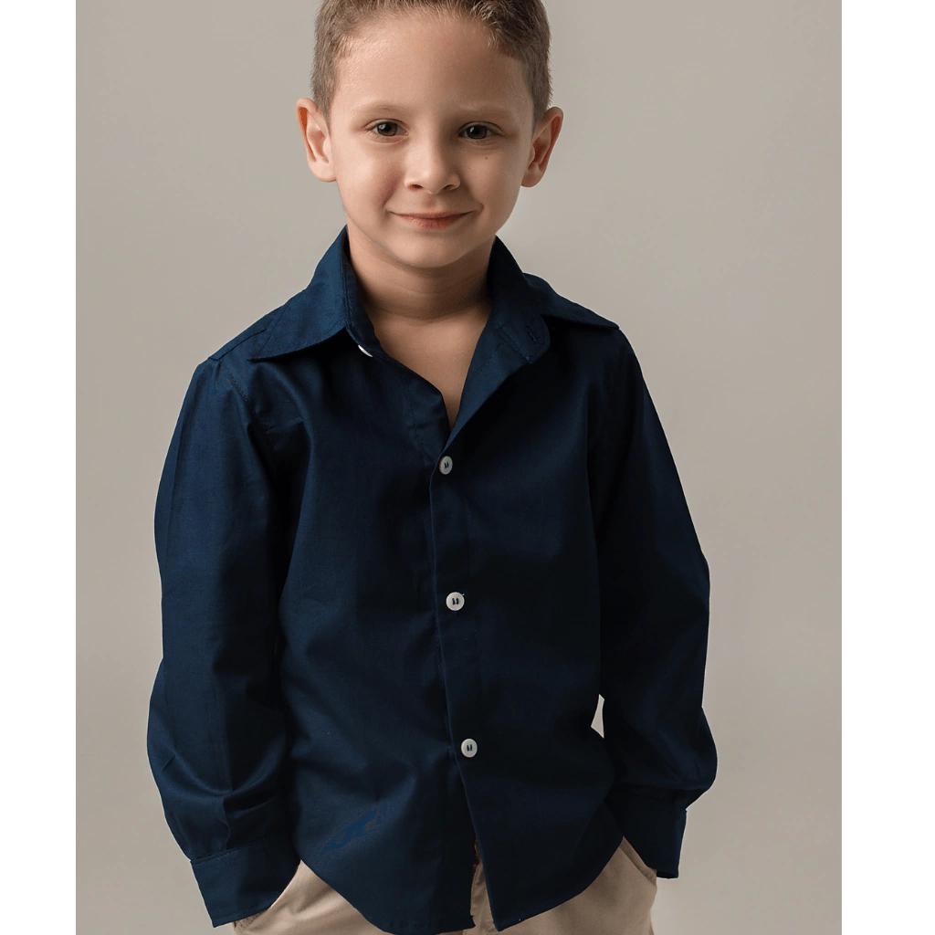 A Camisa de Menino Tricoline fio 60 Azul Marinho é a escolha perfeita para quem busca conforto, elegância e qualidade em uma peça versátil para o guarda-roupa infantil.