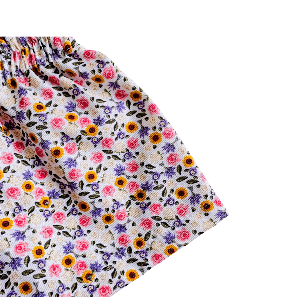 - Material do Short: Fustão cotelê com estampa floral delicada