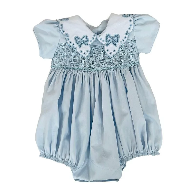 O Pimpão Bebê Casinha de Abelha Pérola - Azul da Little Closet é a peça ideal para deixar bebês mais elegantes e charmosas em ocasiões especiais. Com seu corpinho todo bordado à mão no maravilhoso ponto Pérola da técnica smock conhecida como Casinha de Abelha, este romper traz um toque festivo e requintado às pequenas.