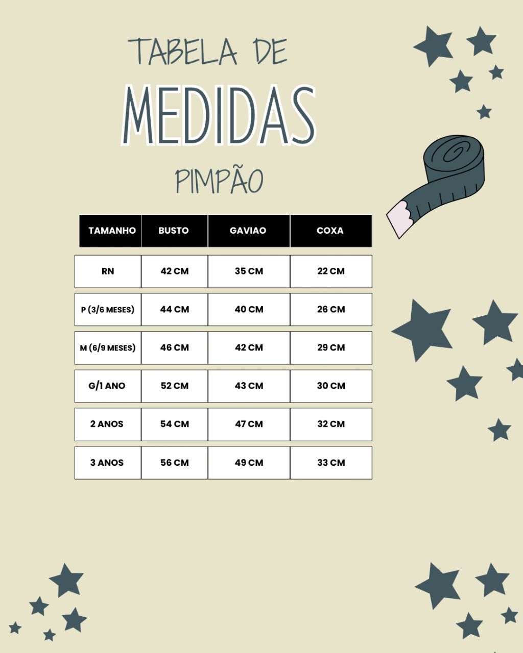 Sendo uma peça amada por mamães e vovós, o Pimpão (romper) é ideal para bebês de 0 a 24 meses, permitindo liberdade de movimento para os pequenos explorarem o ambiente com segurança e estilo. A Little Closet é reconhecida por produzir as peças em Casinha de Abelha mais primorosas do Brasil, sempre buscando alta qualidade em seus detalhes.