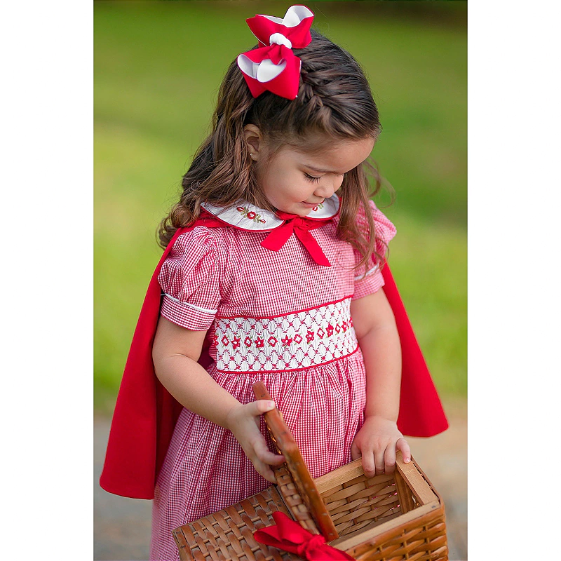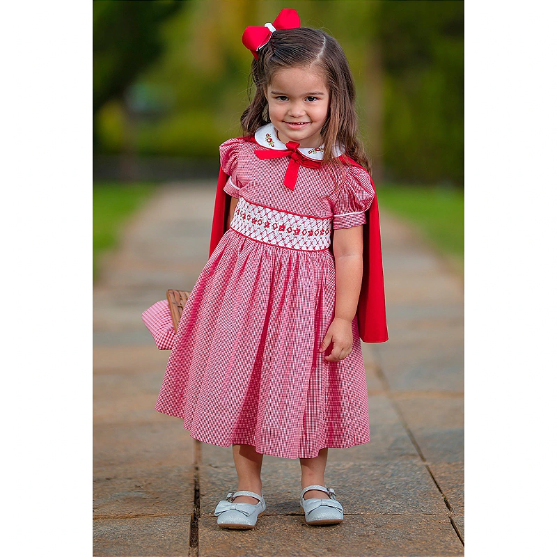 Transforme sua menina na verdadeira Chapeuzinho Vermelho com o Vestido Infantil Chapeuzinho Vermelho - Novo da Little Closet. Esta peça primorosamente bordada à mão em ponto smock e rococó é confeccionada em tecido nobre 100% algodã. Possui uma saia bem rodada e manguinhas princesas que tornam o visual ainda mais encantador.