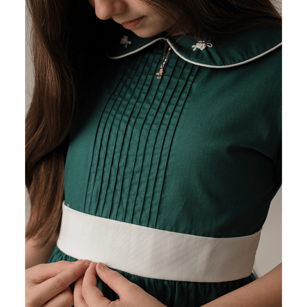 Ficha Técnica: - Nome: Vestido Infantil Clássico Verde Floresta - Cecila - Cor: Verde Floresta com detalhes em off white - Detalhes: Corpinho com nervuras fininhas e golinha bordada à mão - Categoria: Vestidos Infantis - Indicação de Uso: Festas, passeios, ocasiões especiais