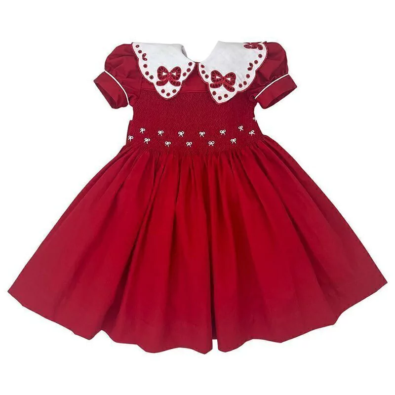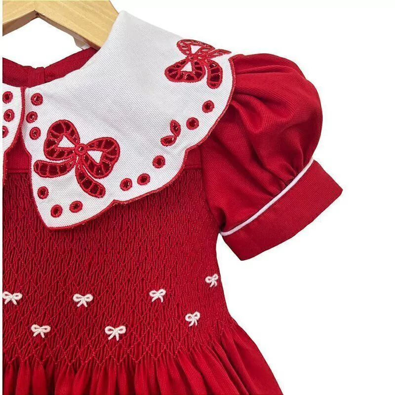 O deslumbrante vestido infantil de luxo Vermelho Casinha de Abelha Eleonor apresenta um bordado delicado e requintado, realizado à mão chamado ponto smock, conhecido no Brasil como Casinha de Abelha. Cada ponto é meticulosamente trabalhado a mão, criando uma textura única e sofisticada. O vestido é confeccionado em tecido premium de puro algodão, garantindo conforto e qualidade excepcionais.
