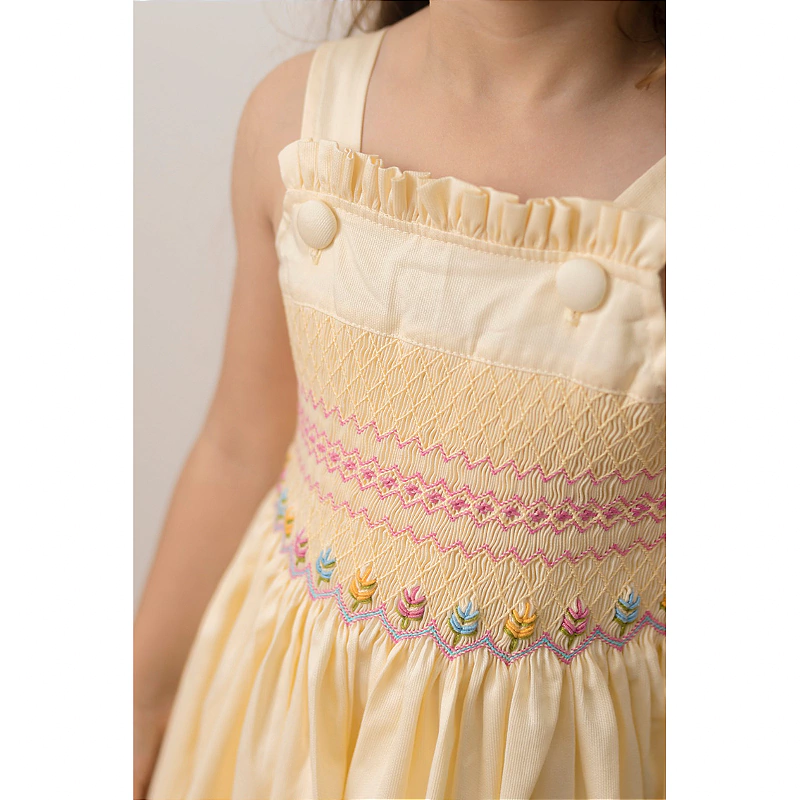 O Vestido Infantil Lizzie - Amarelo da Little Closet é uma peça encantadora que une elegância e sofisticação para ocasiões especiais. Com detalhes minuciosos, como bordados à mão na técnica de rococó e flores delicadas inspiradas em um jardim encantado, este vestido é perfeito para iluminar o visual das pequenas fashionistas.