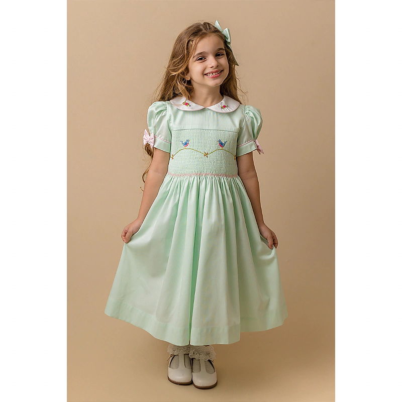 O Vestido Infantil Pássaros - Verde da Little Closet é mais do que uma simples peça de roupa, é uma obra de arte que transmite elegância e sofisticação artesanal. Os pássaros ricamente bordados à mão adicionam um toque encantador e único, capturando a beleza da natureza de forma delicada e autêntica. A cor verde vibrante traz frescor e vitalidade, destacando ainda mais os detalhes dos bordados, tornando-o perfeito para ocasiões especiais que demandam refinamento e originalidade.