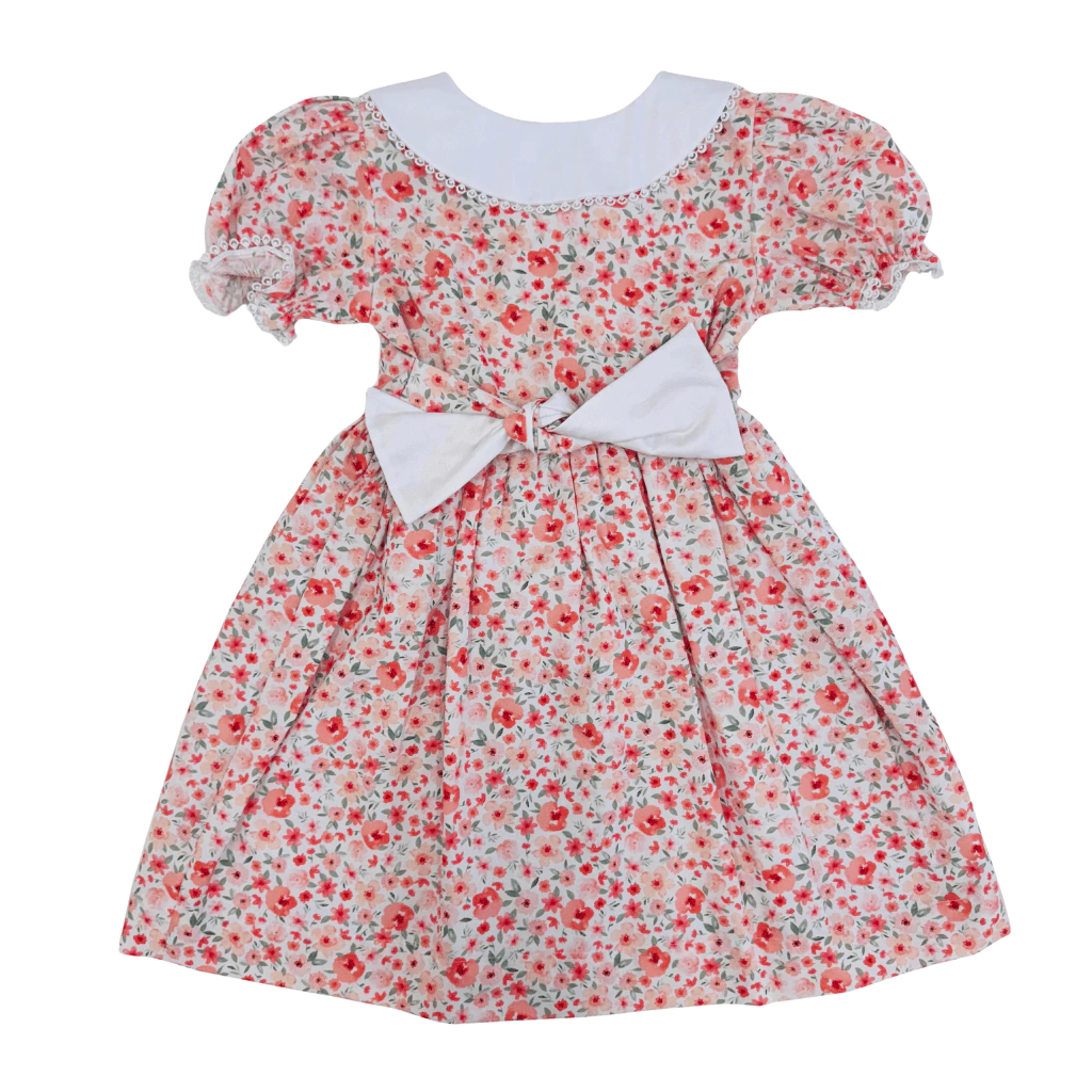 Encante-se com o charme do Vestido Margot, uma peça que une o clássico ao vibrante em um design delicado e cheio de personalidade. Este vestido em floral estilo Liberty apresenta uma paleta de cores cuidadosamente escolhida, combinando tons de vermelho e pêssego que trazem vida e suavidade ao visual.